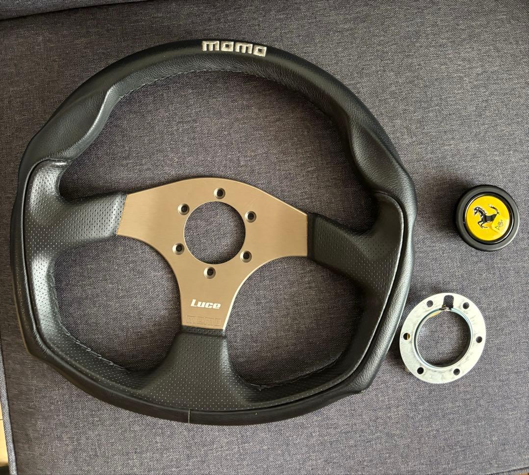 momo コルセ 36cm 4本スポーク希少なモデルだと思います。画像に写っているものがすべてとなります。他にも見落としている目だたない傷があるかもしれませんが、あくまで現状を優先とさせていただきます。約35年くらい前の商品になります。神経質な方はご購入をお控えください。