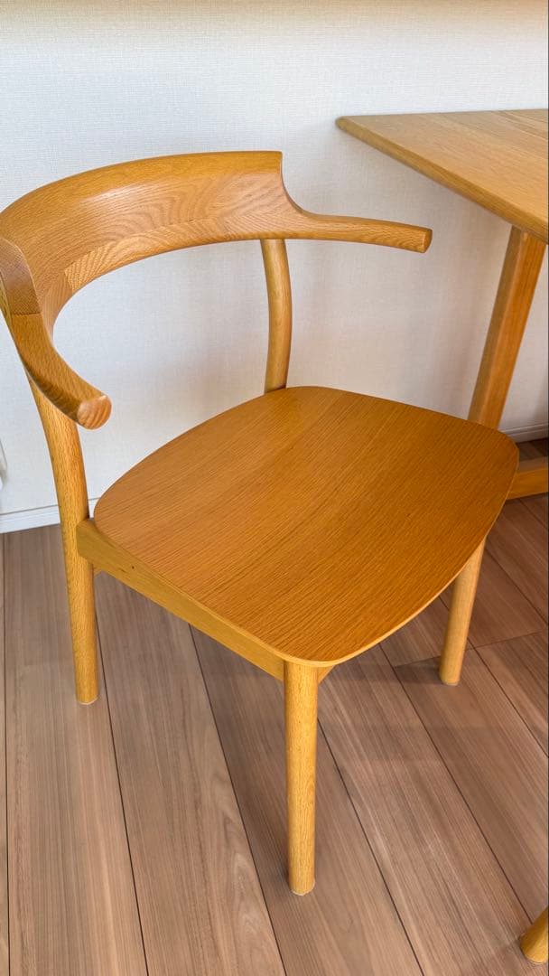 - 先日、我が家に遊びに来た友人が、座りやすさは勿論ですが、椅子を引き出す際や、仕舞うときの取り扱いが、見た目よりはるかに軽くて楽な事に驚いていました。またテーブルとのコンビで、リビングダイニングセットとして、使用しているのですが、皆んな他人の家なのに妙に落ち着くと言ってくれます。